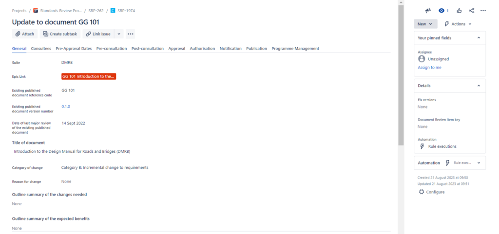 A Change ABCD issue in Jira is used to record the governance information and approvals when a new standard is created for the first time or updated thereafter.