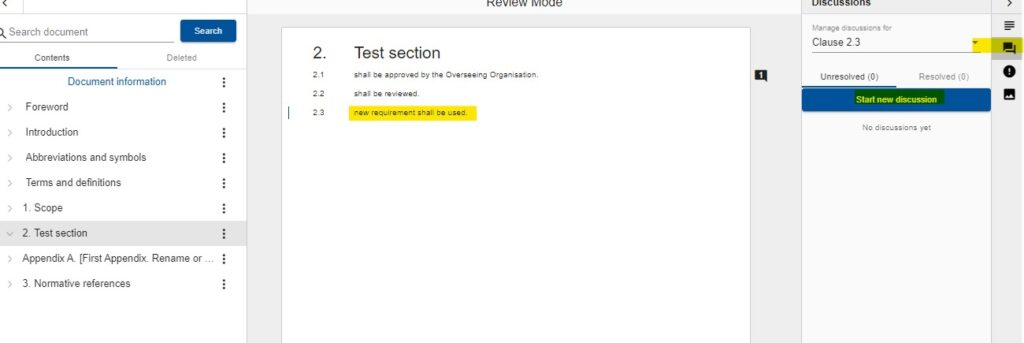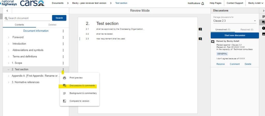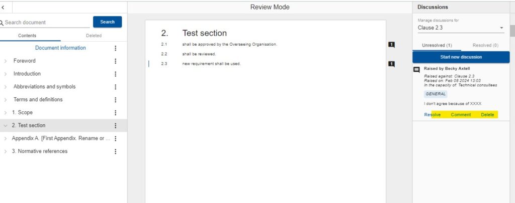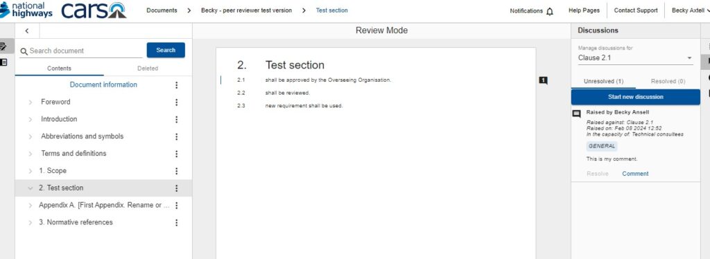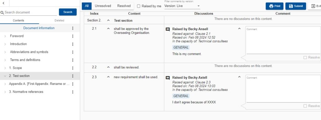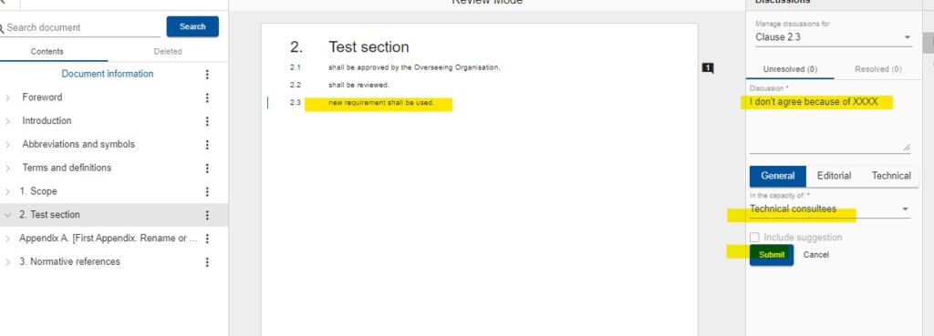 Click on the sections available to you on the left hand side, one by one. You can read was is written on a clause by clause basis and make any comments against the clause, table, image etc. You cannot edit the text.