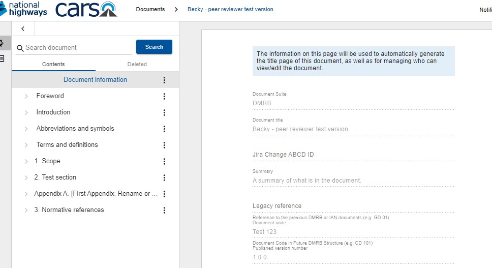 The document information page contains a summary of proposed document code, title, a summary of what is about, legacy documents etc. You cannot and are not expected to add any comments here.