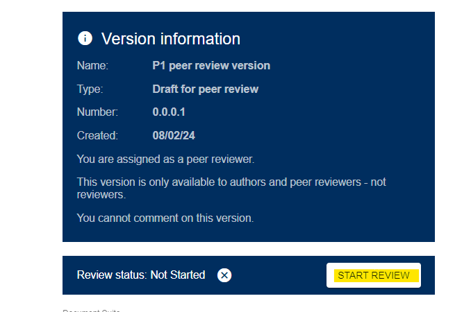 Update the review status to ‘Start review’. This assists the author with knowing what has been reviewed, what is in progress and what has not been started.