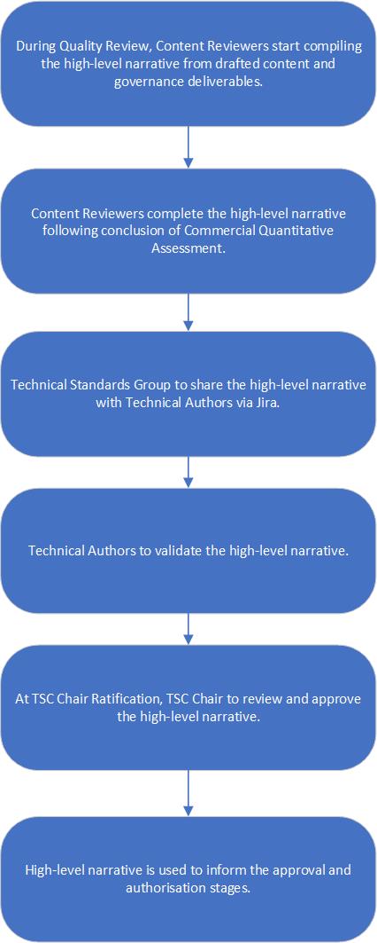 - The Technical Author is responsible for compiling the high-level narrative which will be ratified by the TSC chair.