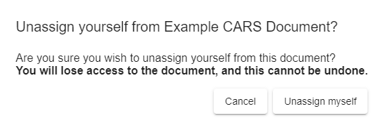 Please note that if you attempt to remove your own access from the document, you will be prompted for confirmation so that you do not inadvertently block your own access.